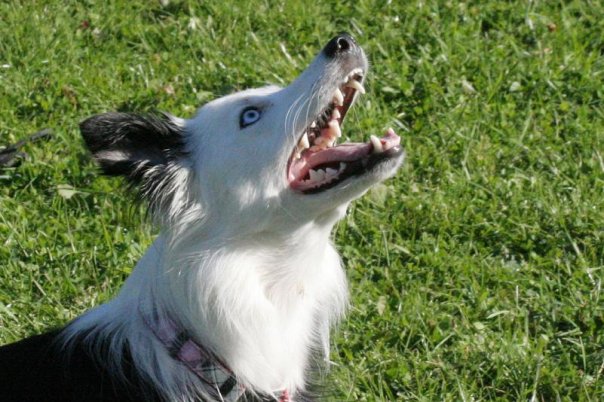 – Gullehjärtat gjorde jättefin apportering, svish ut, snyggt grepp, pang bomm in——-och FÖRBI mig, ner i lekposition och jag räddade nollan med ett lite fotkommando. Jag höll på dö av skratt. så har hon aldrig gjort men jag gjorde misstaget att berömma henne ordentligt efter en kanonfin ruta…..då såg hon apporten som belöning;-)….men hon var jävligt söt!