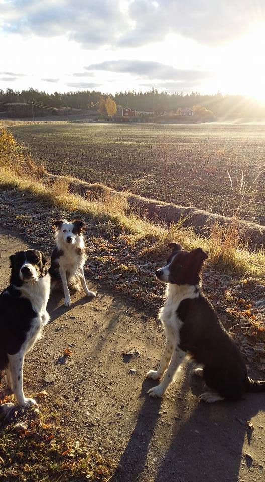 Häromkvällen lastade vi baggar i mörkret. The real thing utan grindar och hjälpmedel. Med pannlampa:-) Kajsa fick in dom och skulle följa med in i transporten men stångad ut hon blev. Knasfia. Behöver få henne lösare i flankerna så blir närarbetet enklare. Samt jobba mer med ”gå bort” för att få henne släppa trycket om fåren ibland när de står mellan nja och ja vi går in i transporten eller liknande situationer. Baggarna blir lätt sura.